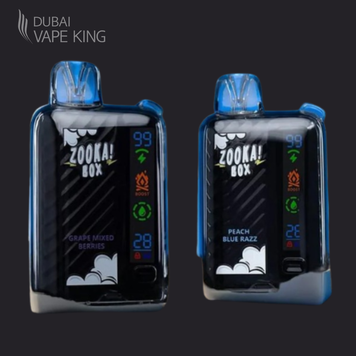 The ZOOKA BOX 25000 is a powerful disposable vape featuring dual mesh coils, adjustable airflow, and a 1.85" display, delivering up to 25,000 puffs with rich flavor and customizable settings.